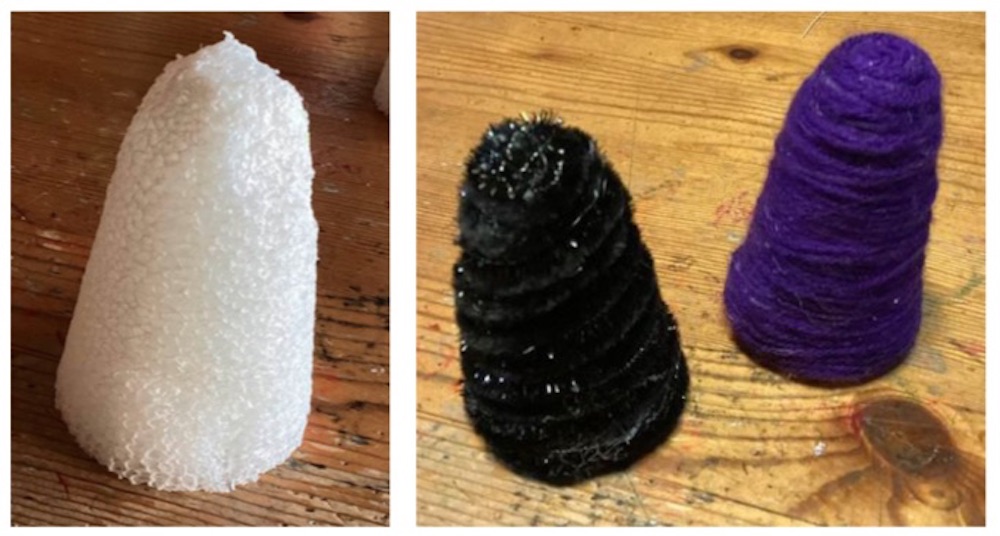 First, you need a little cone tree. You can make one (like we did with the Krampus tree) or buy a small styrofoam or cardboard tree form. They are everywhere right now in craft sections.
