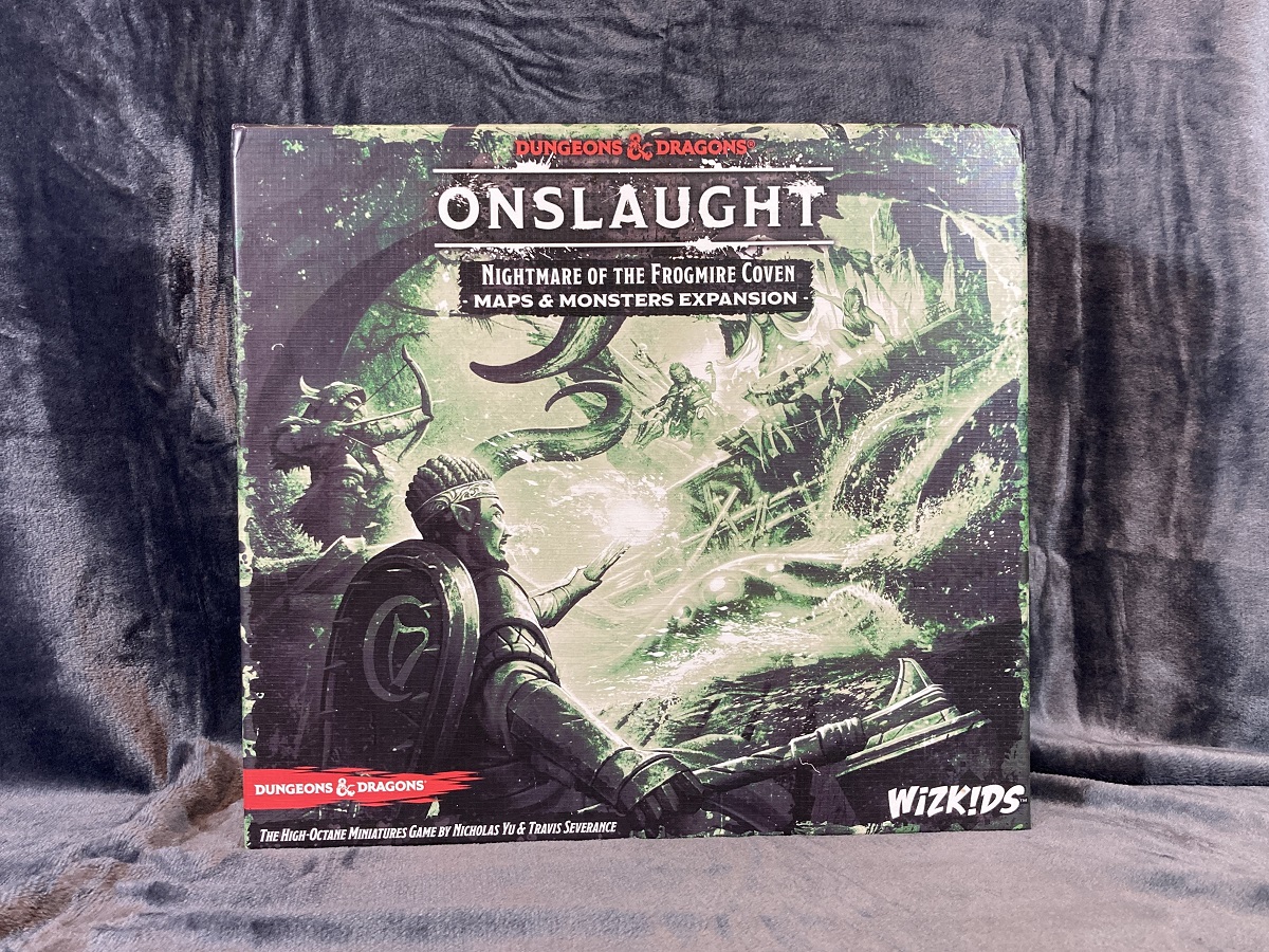 I have enjoyed playing Dungeons & Dragons: Onslaught for nearly a year now. I like that the game includes pre-painted miniatures that look great, pre-created characters that have unique abilities and stats, and combat dials to easily keep track of everything. In addition to the core set, I have added the two new factions (Red Wizards and Many Arrows), the Sellswords characters which can be added to any of the factions, and the expansions for the original Harper and Zhentarim factions. Each of those added more characters which could be played with the original scenarios. Now with the Nightmare of the Frogmire Coven expansion, you get new monsters for new challenges. The Froghemoth is a really cool miniature. The eyestalk and tentacles can be removed and attached to water elements. In some scenarios, the tentacles act as individual monsters while in other scenarios, the tentacles and eye stalk represent the submerged Froghemoth. In my opinion, this is one of the best looking miniatures in the series.