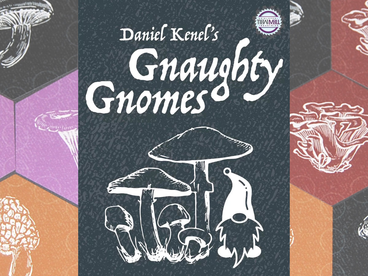 Gnaughty Gnomes was designed by Daniel Kenel and published by New Mill Industries, with graphic design by Daniel Newman.