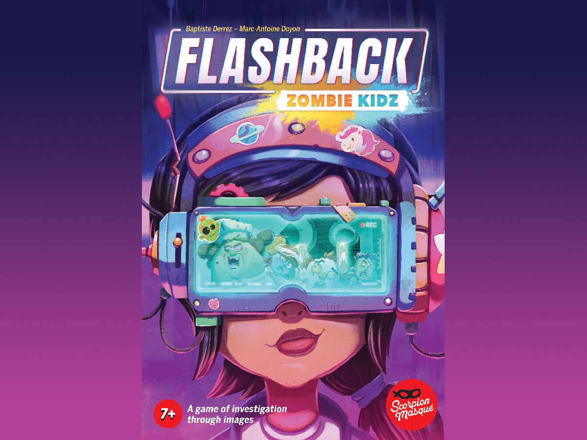 Flashback: Zombie Kidz was designed by Baptiste Derrez and Marc-Antoine Doyon and published by Scorpion Masqué, with illustrations by Laure de Châteaubourg, Jennifer Mati, and Michel Verdu. It is distributed in the US by Hachette Games, who provided the review copy.