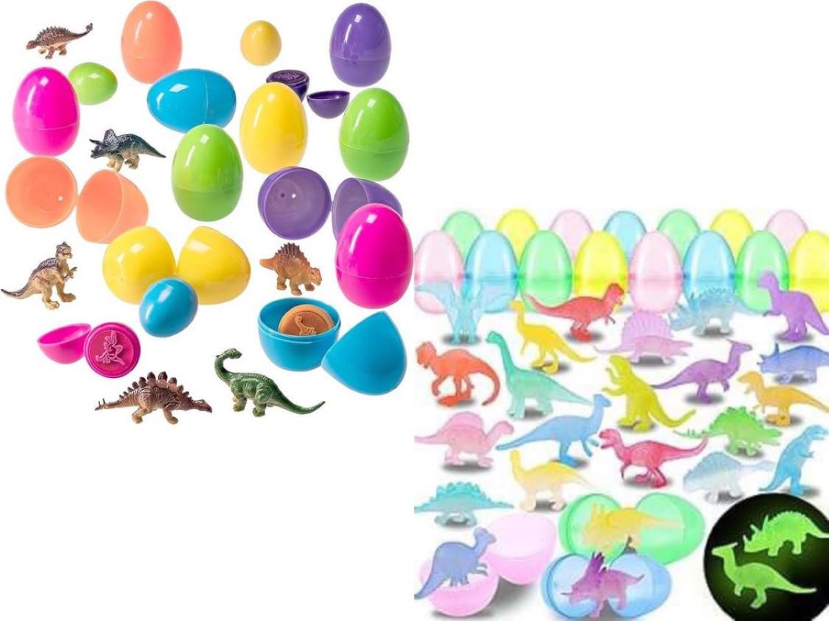 Want to save yourself a bit of time? Simplify your Easter egg hunt with pre-filled eggs this year. You could opt for this set of twelve eggs, half of which are filled with dinosaur figurines and the other half with dino stamps–perfect for an artsy child. Or if you’re looking for more eggs, this set comes with twenty-eight, each home to a glow-in-the-dark dinosaur toy. How cool would it be to search for eggs at night with a glow-in-the-dark Easter egg hunt?