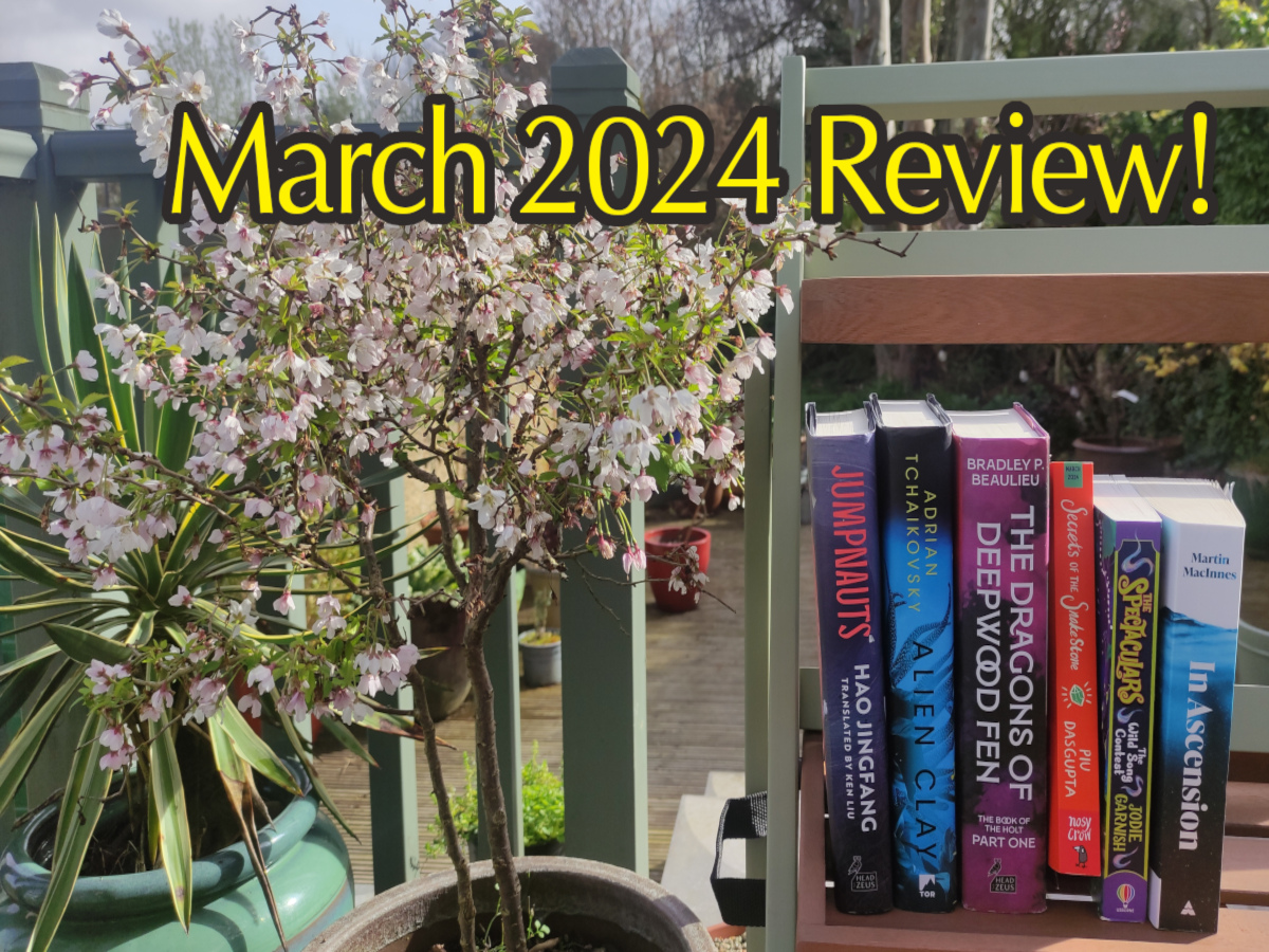 Another month has gone, and I have now been crushed beneath an avalanche of chocolate eggs. Before all that though, I read a few books during the month of March. As ever, not as many as I’d hoped. My reading targets were knocked off kilter a little bit by the unexpected arrival of Alien Clay by Adrian Tchaikovsky. I had to readjust to fit this in and I’m glad I did as it was probably my favorite book of the month.