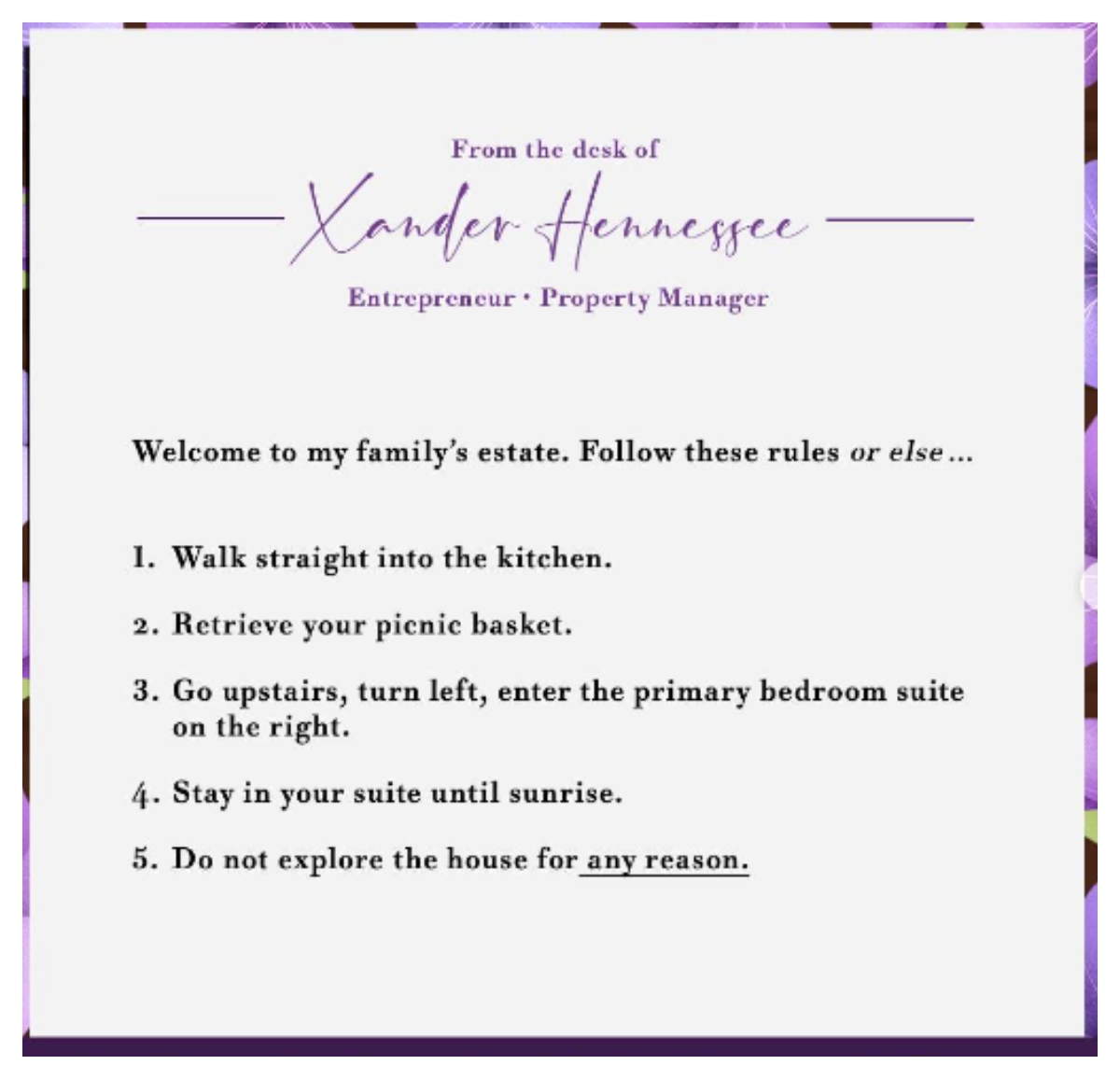 Lucky Hart has a predilection and talent for the supernatural. However, her interest in parapsychology is not taken seriously by anyone, and she finds herself isolated—and self-isolating—as a result. She is estranged from her family, has repeatedly lost friends, and has been rejected from graduate school on two separate occasions. She is finally able to land a break in her chosen field by scheming her way onto a reality show about Hennessee House, an old Victorian house with a notorious reputation. The production company has problems; every actor on their show quits after spending only three nights inside.