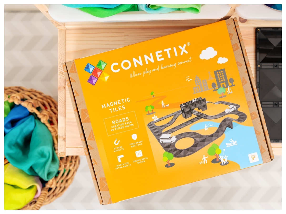 For anyone who has ever spent a rainy day playing with magnetic tiles, the new Roads range from Connetix is the perfect addition to extend gameplay and expand the boundaries of your imagination. Smooth black tiles with white road markings will add an extra dimension to your existing pack or serve as a standalone play space. Now with arches, intersections, quarter circles, and long and short ramps, the tiles are curved for roads and can be used to build bridges and tunnels, offering a more unusual array of shapes than the standard kits. For those with limited space who have fond memories of the road rugs of their youth, this is the perfect collapsible highway build. –SP